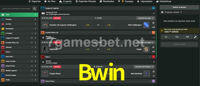 A aposta Bwin oferece aos jogadores a experiência mais conveniente de apostas em eSports!